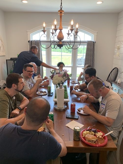 Recently Bryan invited a group of men and their sons to spend time together on his property, shooting, fishing, throwing hatchets, and as Bryan said, "Blowing up stuff in the name of Jesus!" As they shared a meal together, discipleship, encouragement, and some good laughs happened organically around the table!