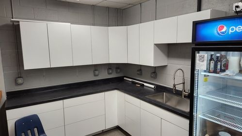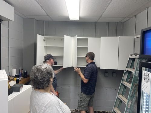 Enter Dave and Chris June. Married and retired, Dave is a painter and has had a few of his paintings on display throughout various places in Greeneville. They have been attending the Greeneville campus and are committed to the South Greene Campus. Dave and Chris teamed up with Volker Kemmann, another FCC member, to install cabinetry, countertops, and a new sink with an awesome faucet. They also repaired a drain that was leaking.