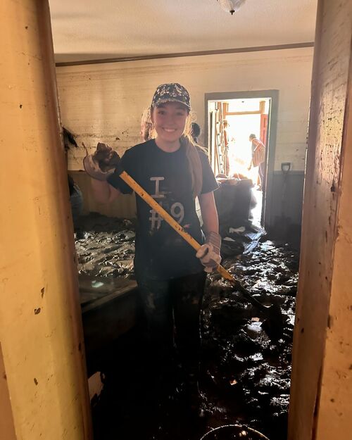 By Day 3, the teams had moved an estimated 700,000 pounds of mud! And the youth group from FCC joined the forces to help. This was a day where families found joy in serving together while also sharing some tears, laughs, and mud slinging. One of those volunteers was 14-year-old freshman, Lily Shrader who came with her dad, Daniel, and younger brother, Hosea. “Helping at Longview, seeing the destruction, and digging through mud that never seemed to end, was difficult physically and emotionally. But, ultimately, God was working there. Seeing the people of all ages and backgrounds coming together to support each other and our community made it all worthwhile. This, I believe, is one of the most powerful examples of loving our neighbor.”
