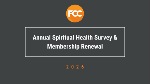 At FCC, we take our membership roll down to zero at the end of every year and have a month-long time of renewal and recommitment that is accompanied by a 7-Habits based Spiritual Health Survey. This helps us take stock of where we are spiritually as individuals and then focus on how to grow together.